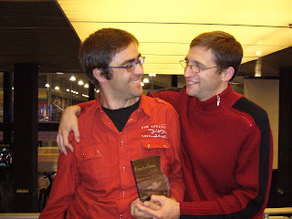 La verdad aún queda mucho trabajo por delante hasta que se estrene la pelicula a finales de 2010, pero estaremos esperando ver su trabajo, e incluso comentando su trabajo siempre que nos enteremos de algo. Para mi es una alegria su ascensión hacia nuevas cotas cinematográficas y los metodos utilizados para su producción, nada habituales aquí, en España, pues la pelicula no consta de ninguna subvención estatal. Personalmente es algo que siempre he creido conveniente, que dentro de el avance en el cine, habría que ir a la producción privada, para que entendamos este arte como un trabajo para el público y nos dediquemos con igual fuerza no solo a su realización sino también a su distribución y publicidad, algo que parece se olvida en ocasiones, bueno no voy a enrrollarme en criticas genericas, la verdad, todo tiene un trabajo impresionante. Hablando de lo que fue el otro día, ahí estabamos nosotros haciendo el tonto, algo que no se podía evitar, no, todo el mundo estaba ocupado en otras cosas y nos dejaron solos, algo que no se debe hacer, no, jajajajajajaja...domingo, mayo 11, 2008